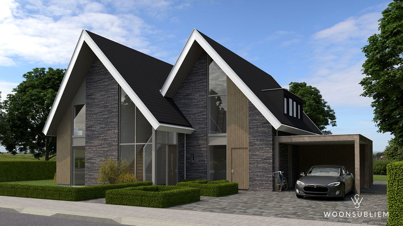 Voor de materialisering is gekozen voor een baksteen in combinatie met vergrijsd hout voor de overige gevelbekledingen en kozijnen.